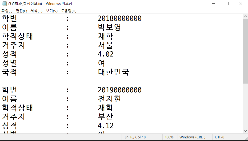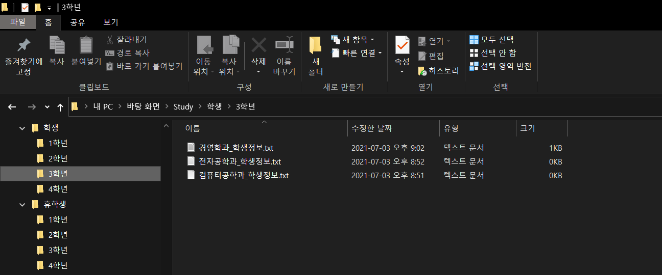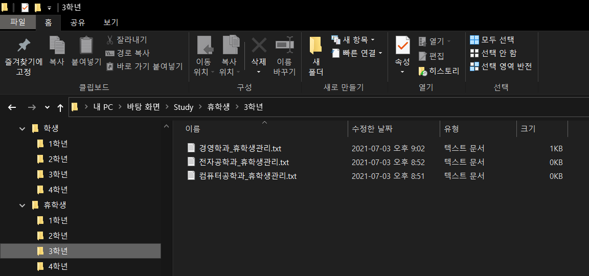 같은 학교 학생임에도 학생과 휴학생 파일에 따로 관리를 하고 있는 모습이다.