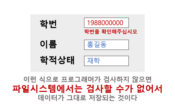 큰 문제가 없을 것 같지만 파일 시스템은 데이터 관리 측면에서 큰 문제가 있다.