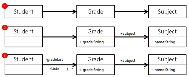 1. Grade 는 Subject 를, Student 는 Grade 를 참조