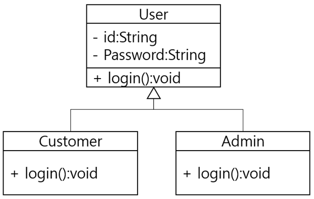 ex) User라는 클래스를 상속받은 Customer와 Admin 클래스