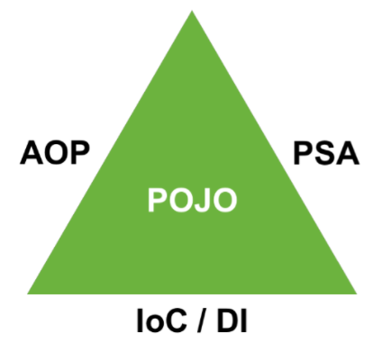 Spring은 Spring Triangle이라고 부르는 핵심 3대요소를 제공해준다. 이는 각각 IoC , AOP , PSA를 일컫는다. [Spring] POJO(Plain Old Java Object)란? [Spring] IoC 컨테이너 (Inversion of Control) 란? [Spring] 스프링 빈을 등