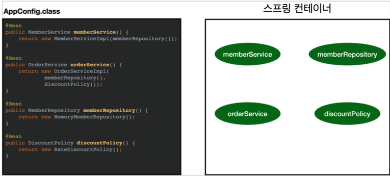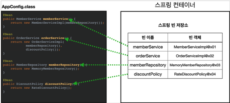 빈들을 등록하고 필요한 곳에서 @Autowired를 통해 의존성 주입을 받아 사용하는 것이 일반적인 방법이라고 할 수 있음