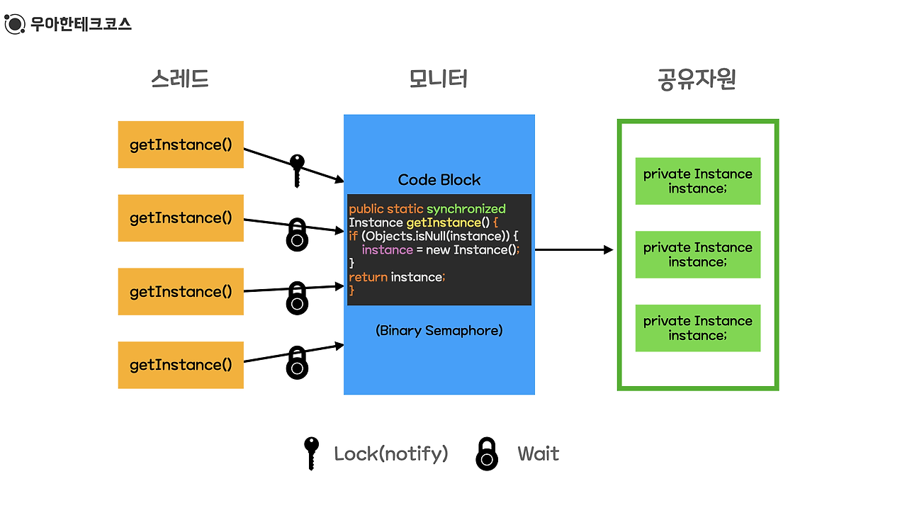 이처럼 동기화가 필요한 상황이 종종 발생하기 때문에 이때 모니터를 활용하여 쉽게 동기화를 사용하면 된다.