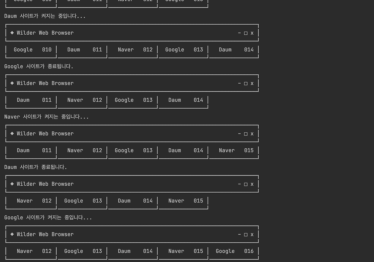 - 3초마다 가장 먼저 켜진 웹 사이트가 꺼진다.