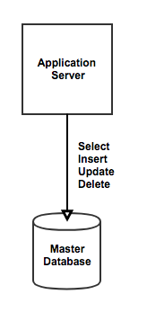 아주 단순한 Database를 구성할 때는 아래 그림처럼 하나의 서버와 하나의 Database를 구성하게 된다.