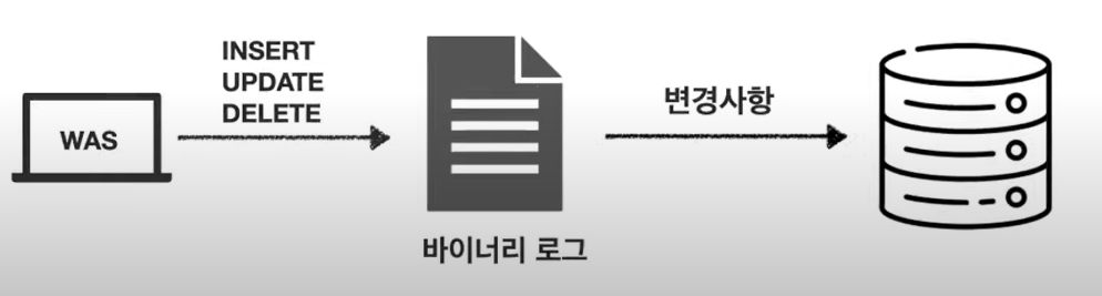 WAS에서 INSERT, UPDATE, DELETE와 같은 요청을 보내면 바이너리 로그에 기록되고, 변경사항이 DB에 전달되는 것이다.