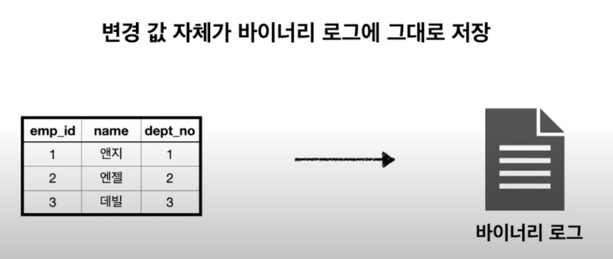이 방식은 변경 값 자체가 바이너리 로그에 그대로 저장되는 방식이다.