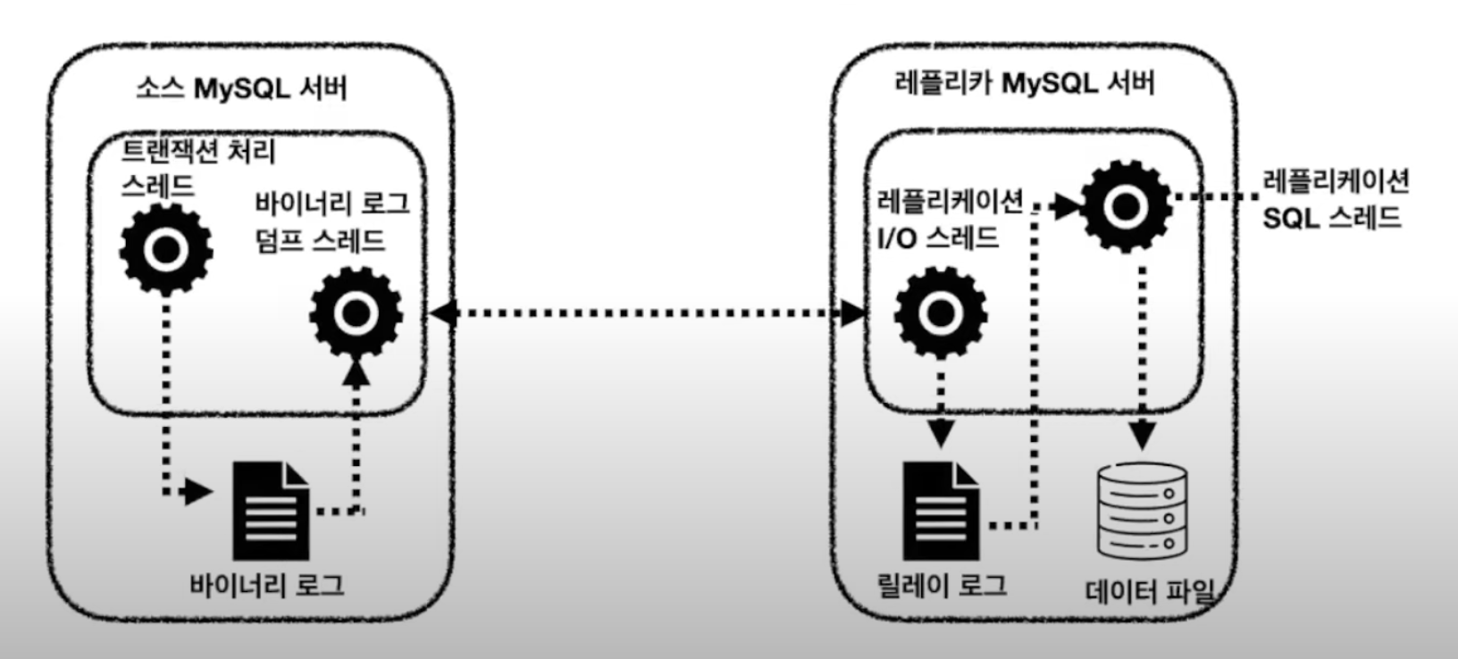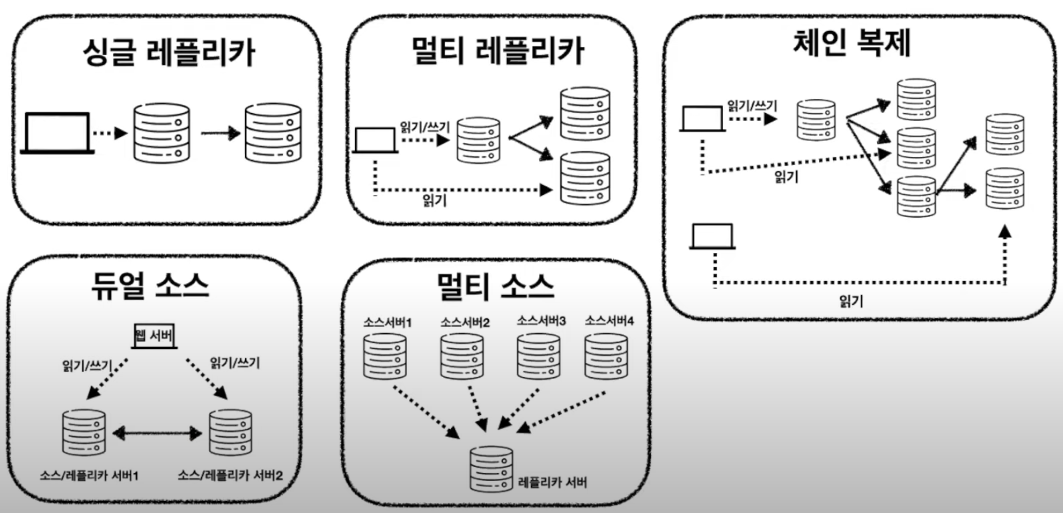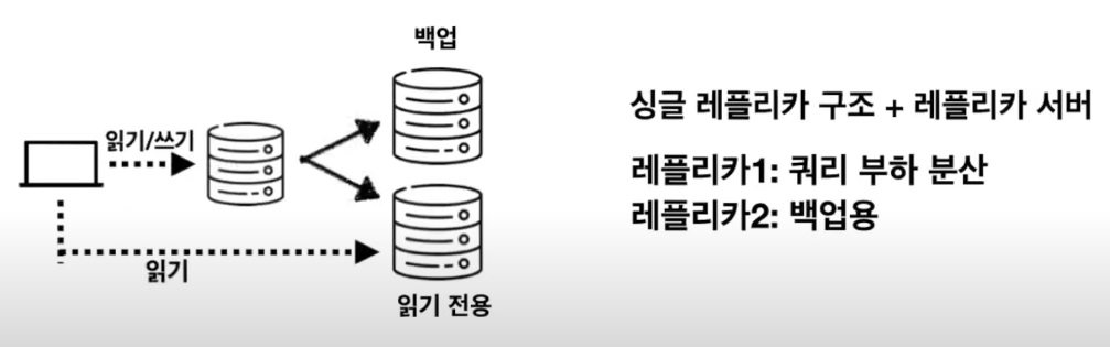 - 데이터 백업, 읽기 쿼리 부하 분산 등에 사용될 수 있음