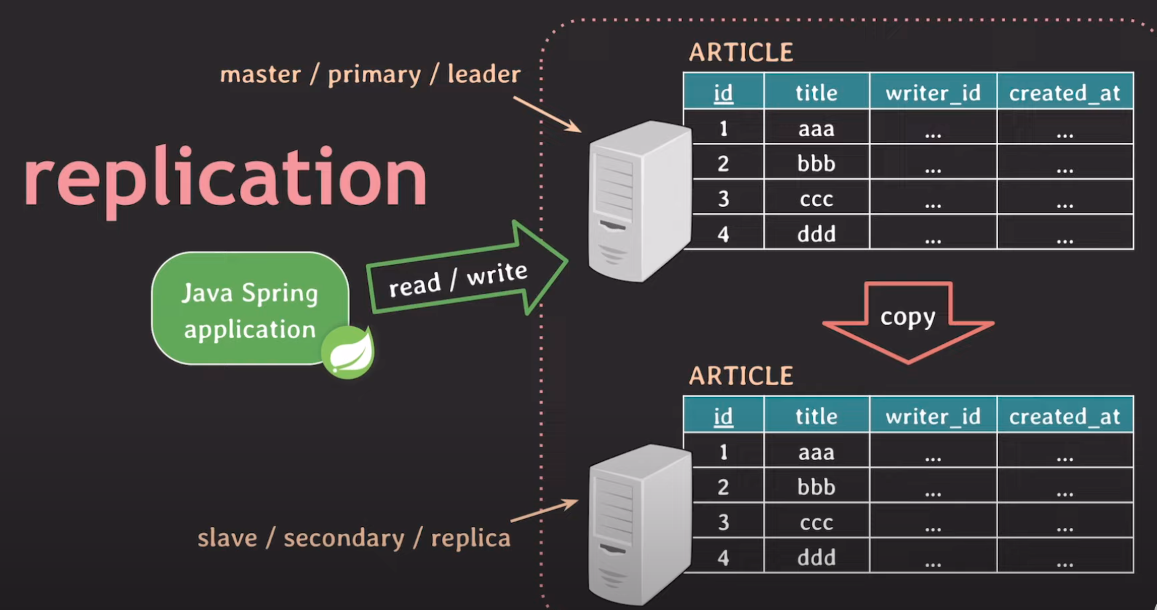 `데이터베이스 리플리케이션(Replication)`은 실시간 복제본 데이터베이스 서버를 운용하는 것을 의미한다.