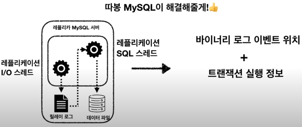 - 이를 위해 MySQL은 바이너리 로그와 릴레이 로그에 상태 정보를 저장하며, 이 정보를 사용해 중단된 위치에서 복제를 재개할 수 있음