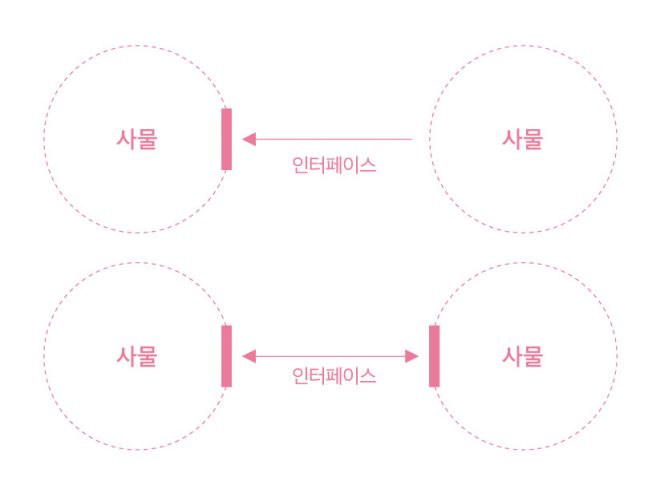 * 인터페이스: 서로 다른 두 개의 시스템, 장치 사이에서 정보나 신호를 주고받는 경우의 접점이나 경계면