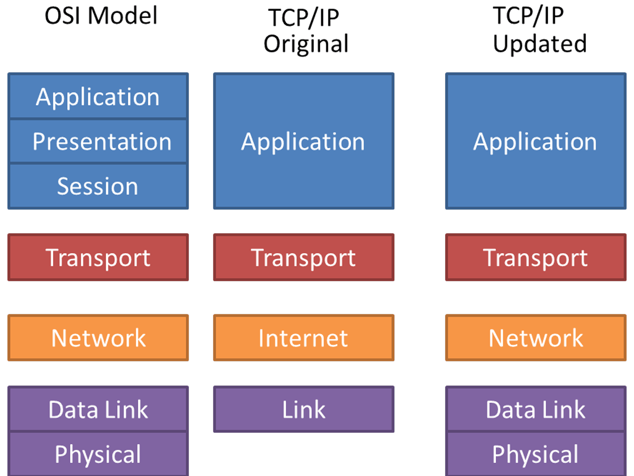 그리고 OSI 모델이 꽤나 유명했던 만큼 현재는 하단 3번째 그림인 `TCP/IP updated 모델`로 배우는 것이 좋다고 한다.