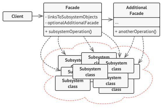 - 비슷하게, 프로그래밍에서 Facade 패턴은 하위 시스템의 구현 변경이 클라이언트에게 영향을 미치지 않도록 하여 시스템의 유연성과 확장성을 증가시킨다.