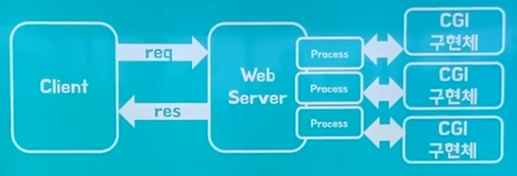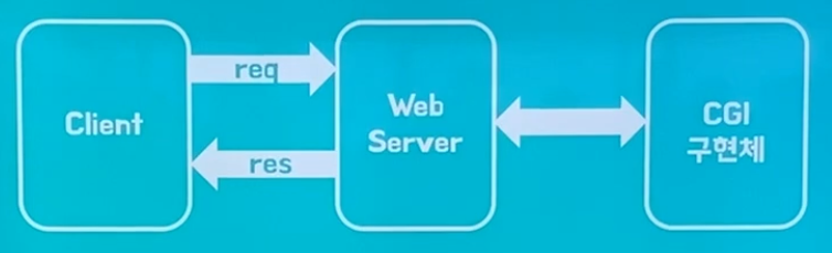 위에서 봤던 그림에서 하나 달라졌다. 바로 Web Server 뒤에 CGI 구현체가 생긴 것!