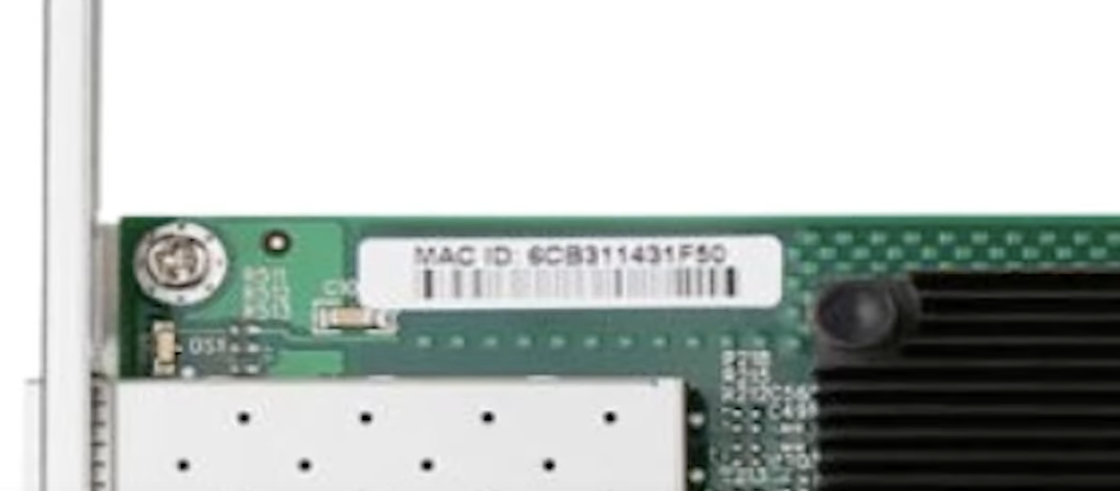 NIC 왼쪽 상단을 확대해서 확인해보면 MAC ID를 찾아볼 수 있다.